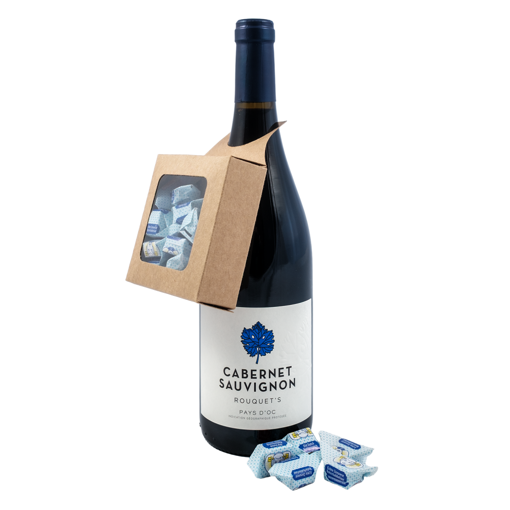 Mooie Zuid Franse wijn (en een knipoog naar de Zeeuwse roots) met een zakje Zeeuwse babbelaars.