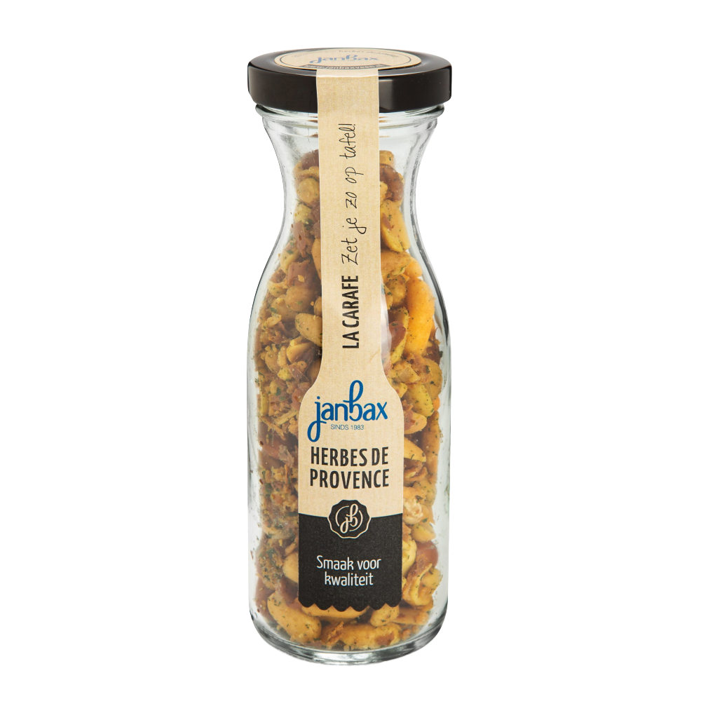 PINDA, AMANDELEN, ui, palmolie, TARWEbloem, zout, rijstmeel, bbq seasoning (suiker, knoflook, ui, paprika, peper, zout, kruidnagel, maltodextrine, sojasauspoeder (bevat TARWE en SOJA), gehydrolyseerd plantaardig eiwit, tomatenpoeder, bbq aroma’s (bevat natuurlijk rookaroma), zoethoutwortelextract, smaakversterker (E631, E627), zuurteregelaar (E330), zoetstof (E951), antiklontermiddel (E551)), rijstolie, provencaalse kruiden [zout, kruiden (peterselie, bonen-kruid, maggiekruid, rozemarijn, fenegriek), knoflook, ui, specerijen (koriander, peper, gember, SELDERIJzaad, foelie, kurkuma, venkelzaad), smaakversterker (E621)], archide olie (PINDA). Kan NOTEN, SESAM, SCHAALDIEREN, VIS, MELK, SULFIET bevatten