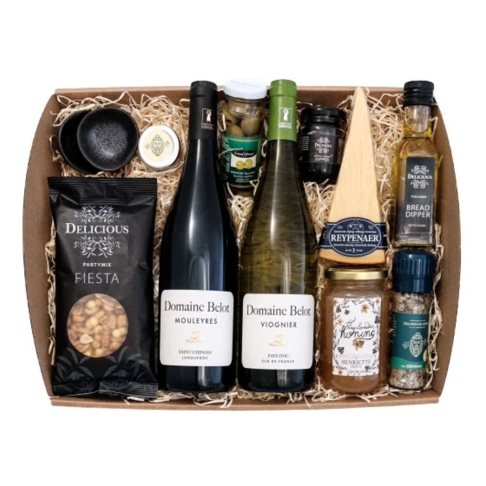 Wijnpakket met allerlei lekkers!