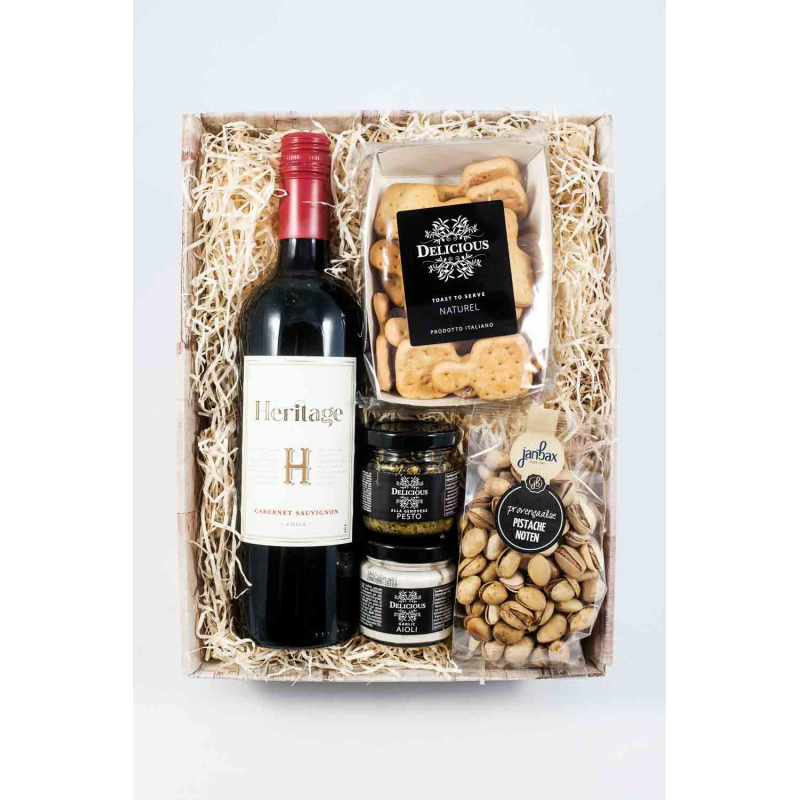 Heerlijke Chileense Cabernet Sauvignon, met allerlei lekkers. Dipstokjes,aïole en tapenade, en Provencaals pistachnoten.